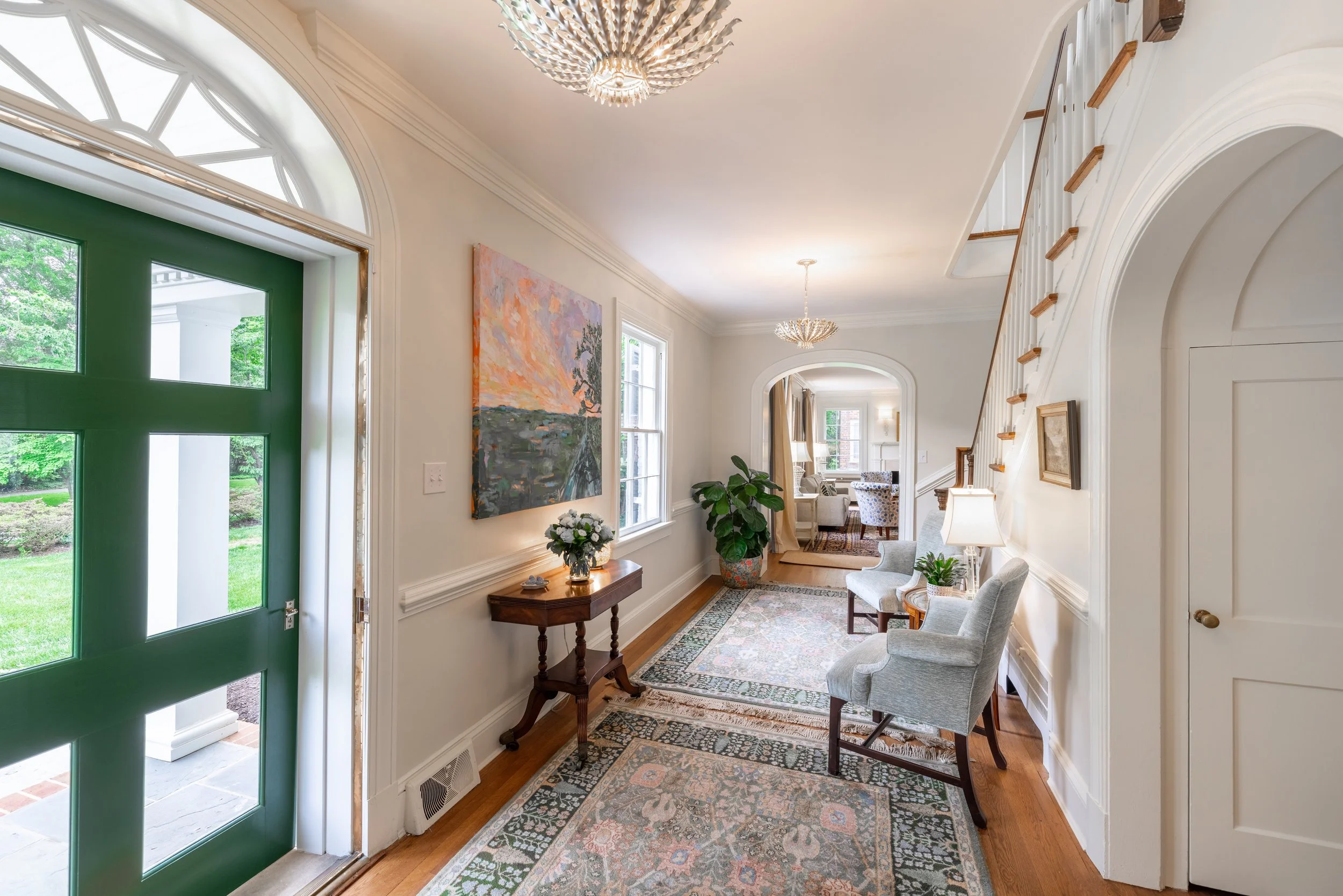 Every corner of this home holds thoughtful details that blend past and present, but an area that is often overlooked, the front door and entryway, was given some special attention. Retaining the original door, we added a classic wood storm door, and topped it with a custom arched transom window to allow more light in.
